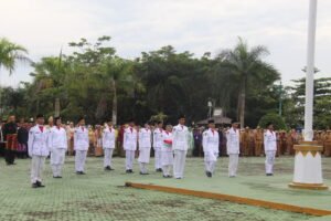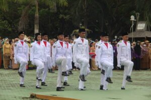 Muhammad Saputra Akbar, S.I.P selaku guru pendamping menyampaikan proses latihan yang lalui oleh para siswa. “Para siswa sudah berlatih sejak dua minggu yang lalu, sehingga mereka bisa tampil percaya diri mengibarkan bendera.”