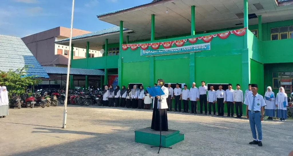 Pagatan (MAN Tanbu) – Pembina upacara bendera Madrasah Aliyah Negeri Tanah Bumbu (MAN Tanbu) berpesan agar para siswa memiliki kesadaaran yang tinggi dalam tiga hal: kesadaran terhadap lingkungan, kesadaran dalam belajar, dan kesadaran dalam kedisiplinan. “Ibu berpesan, bahwa kesadaran diri di kehidupan kita sehari-hari sangat penting. Dengan kesadaran diri, kalian akan melaksanakan seluruh kewajiban dengan […]